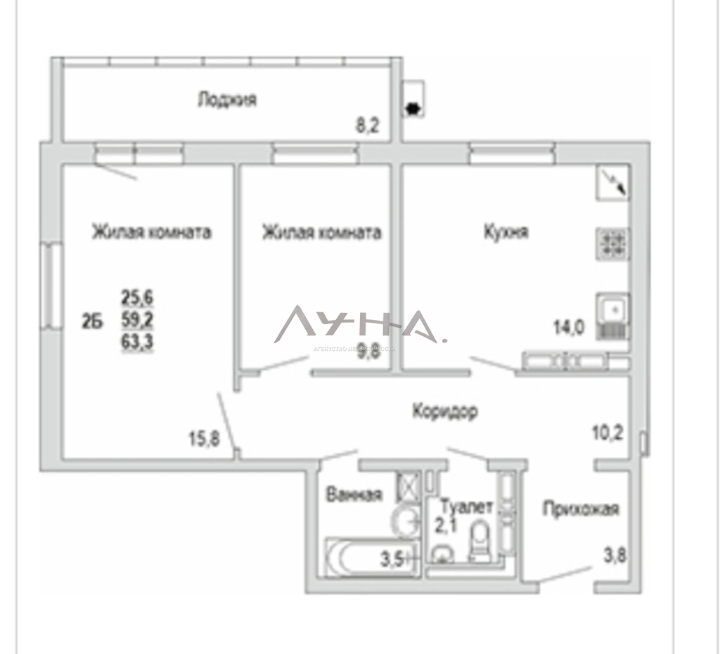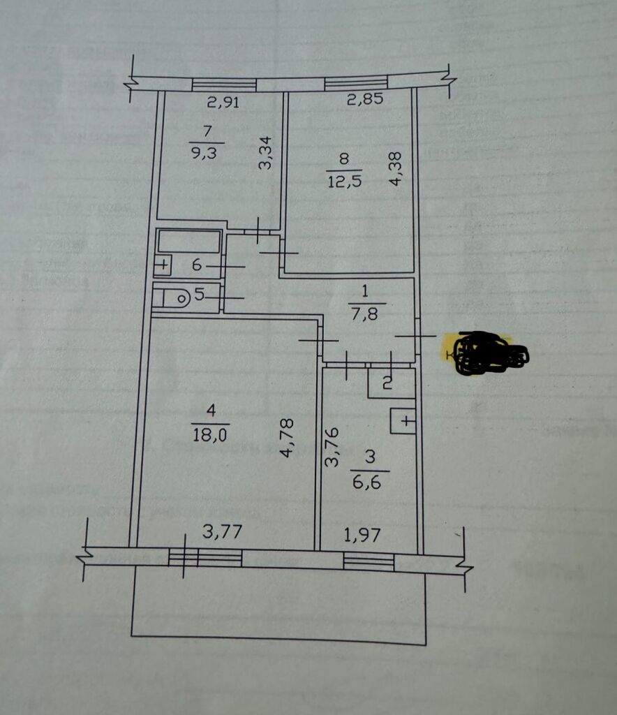 Арт. 90867771. · Планировка: Изолированные комнаты, большая вместительная кухня.