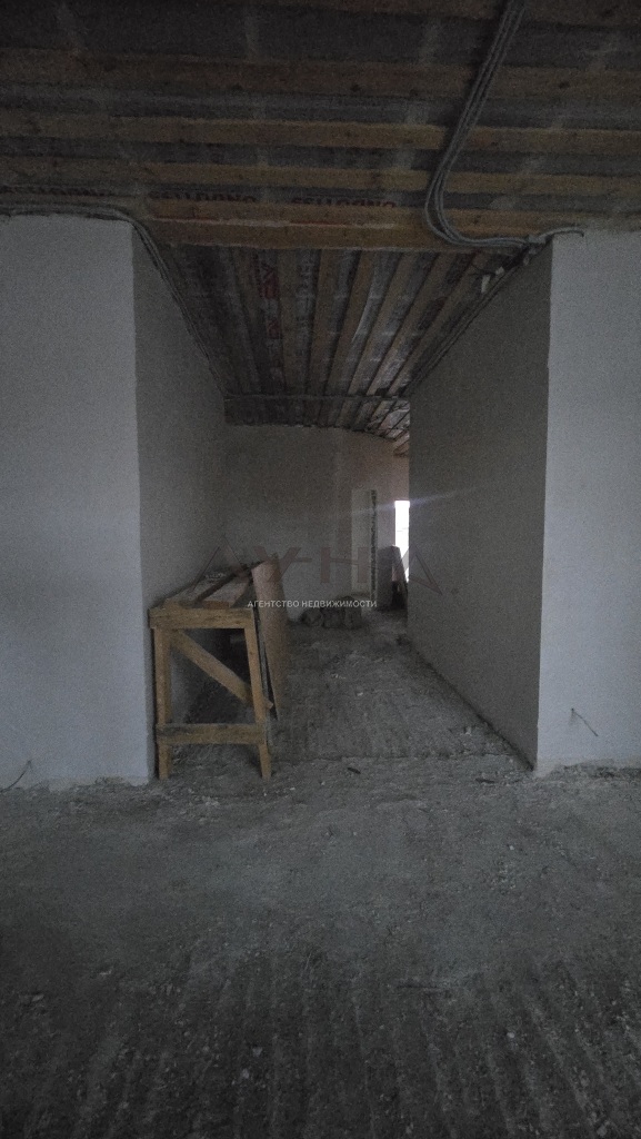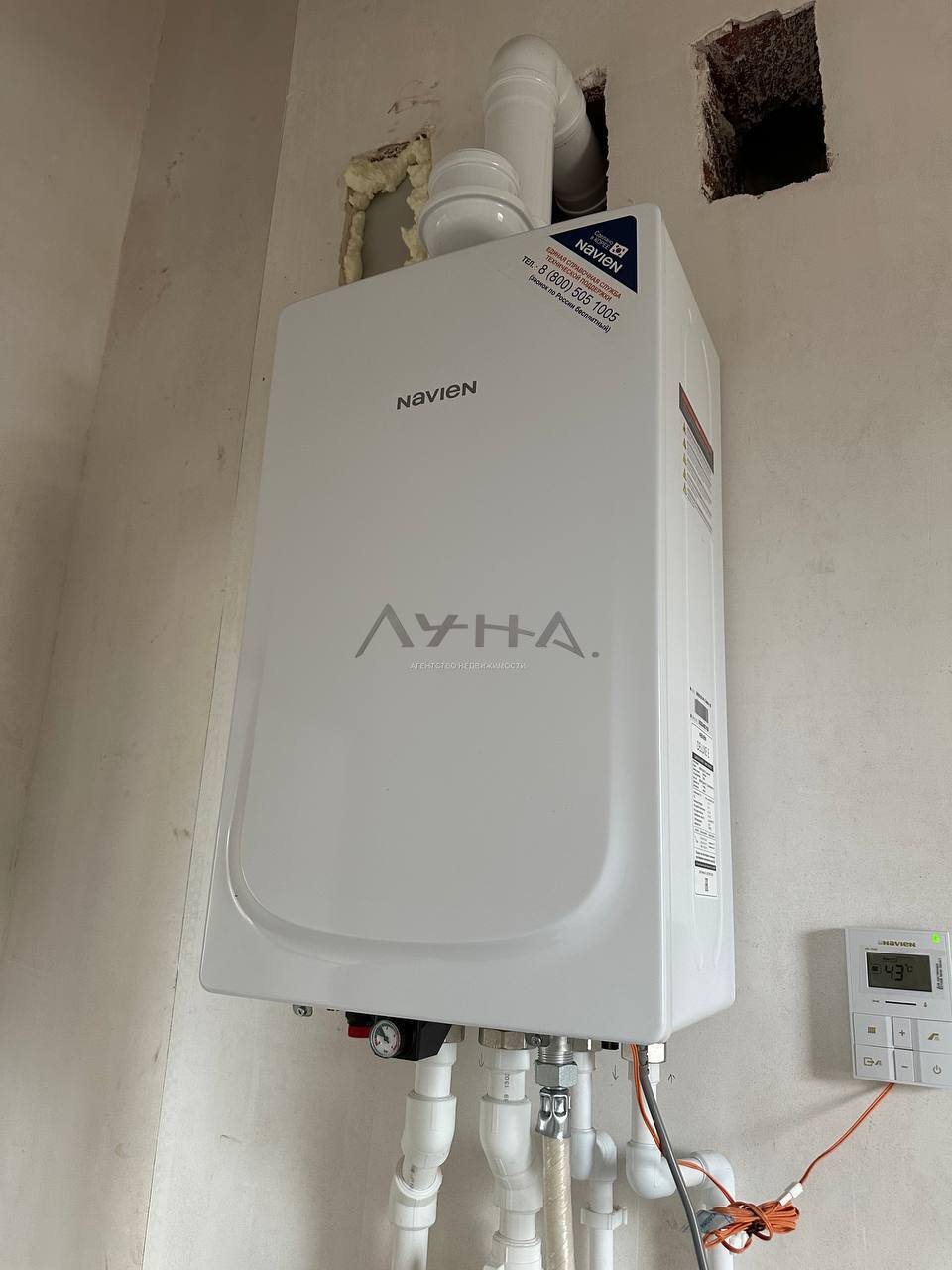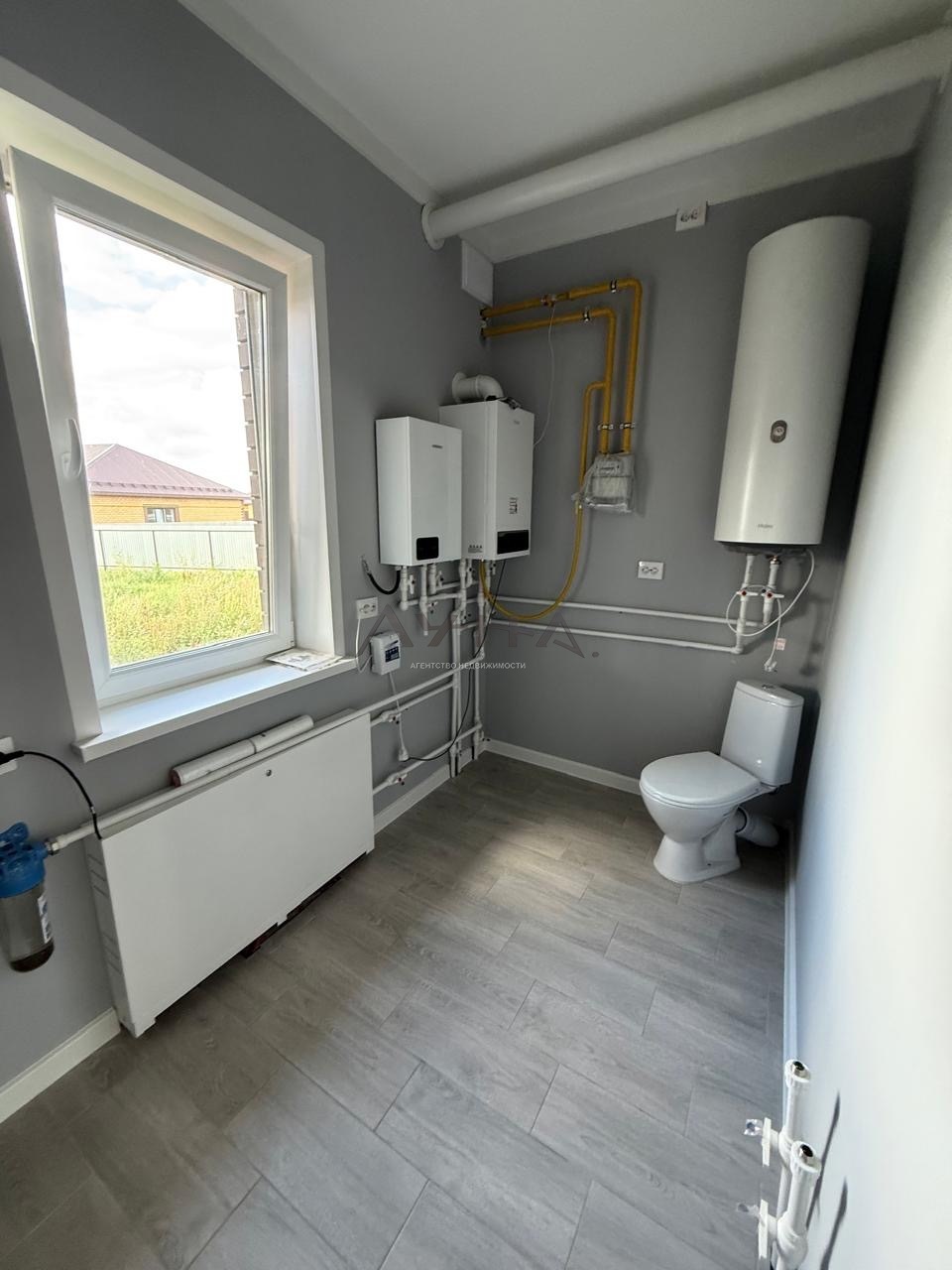 Выполнена стяжка пола, теплые полы во всем доме, есть выводы под радиаторы, заведены все коммуникации.
