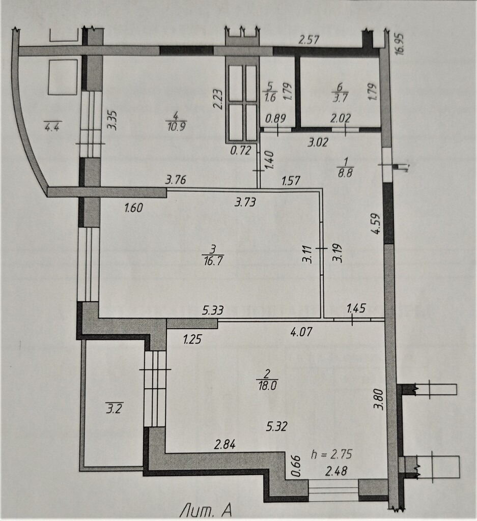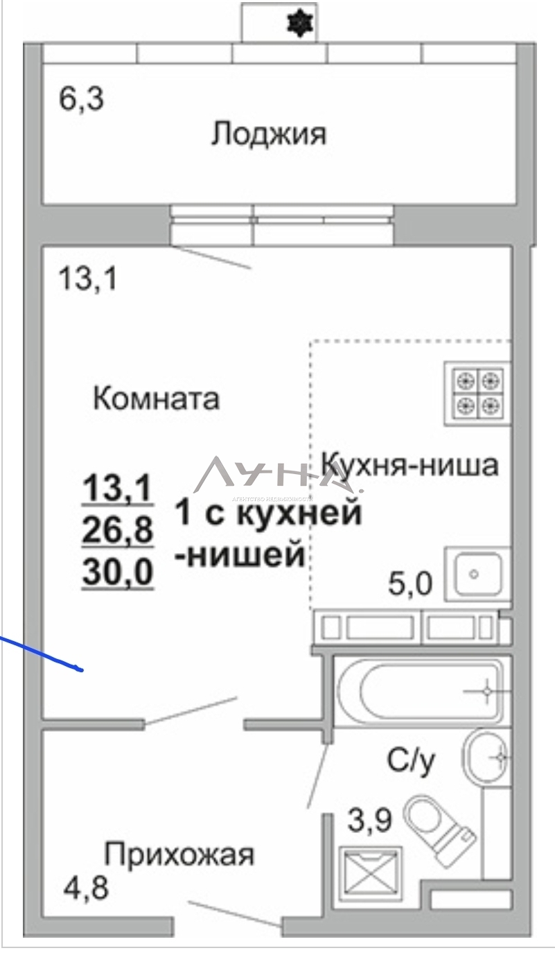 Свободная планировка квартиры позволяет организовать большую кухню-гостиную, отдельную спальню. В квартире высокие потолки 2,95 м., увеличенные окна.