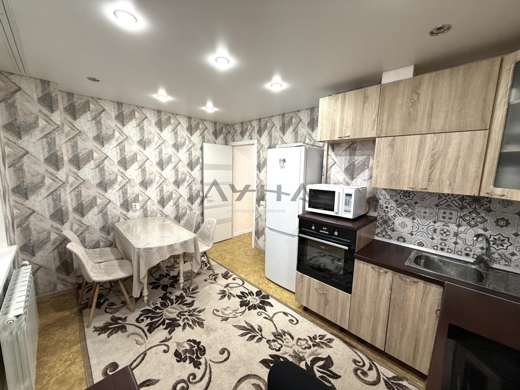 Все в пешей доступности, в квартире все есть: кухня, плита, холодильник, диван, телевизор, микроволновая печь, шкаф, стол и стулья, гардеробная, кондиционер, стиральная машина, диван.
