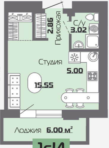 · Простор и комфорт: 37.6 м² с умной планировкой: отдельная спальня для уединения и светлая гостиная-кухня для встреч с близкими.